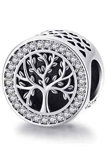 Livets träd berlock för armband, 925 sterling silver berlock pärla passform Pandora / europeiskt armband halsband, smyckegåva för kvinnor flicka mamma, Sterlingsilver