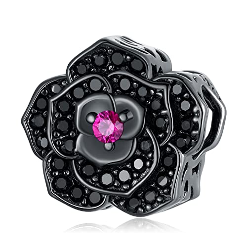Svart ros berlock för Pandora armband, halloween zirkon sterling silver berlocker kvinnor smycken presenter, Kubisk zirkonia, Kubisk zirkonia