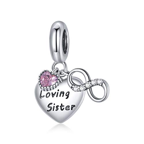 Kärleksfull syster berlock berlock för Pandora sterling silver armband, Kubisk zirkonia