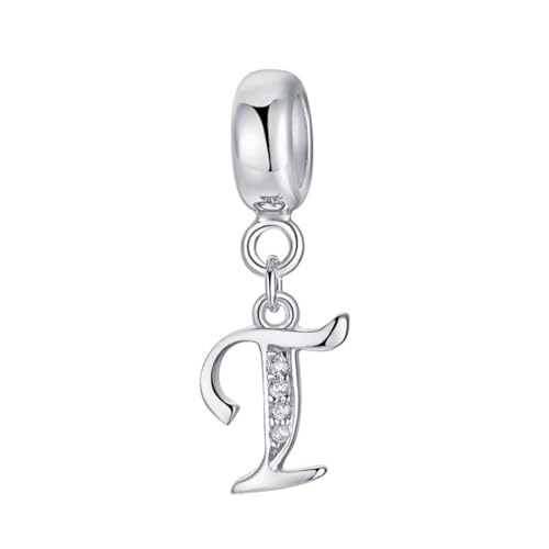 Bokstav berlock 925 sterling silver pärlor alfabet berlocker initial charm årsdag berlock ord berlock passar Pandora Charms armband T