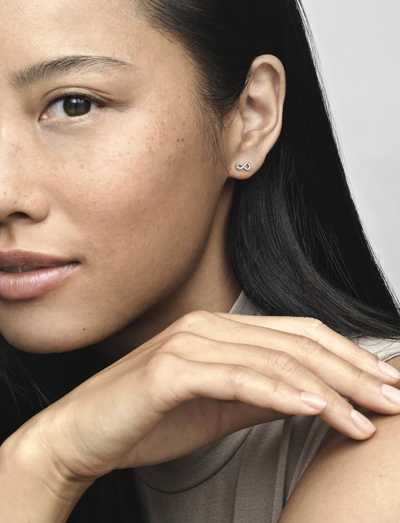 Pandora Infinity Sterling Silver Stud Earrings With Clear Cubic Zirconia - Silver - ONE SIZE