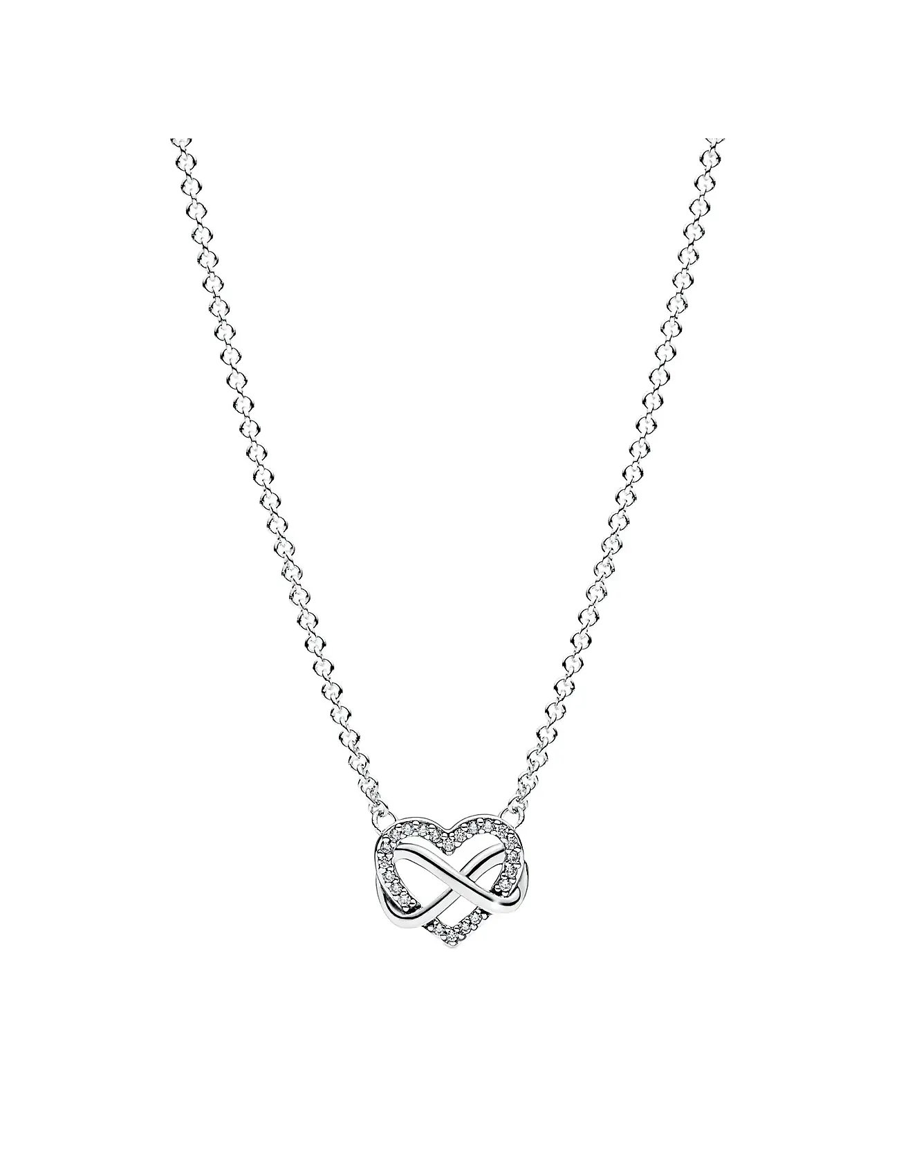 Pandora Infinity Heart Sterling Silver Necklace With Clear Cubic Zirconia Silver