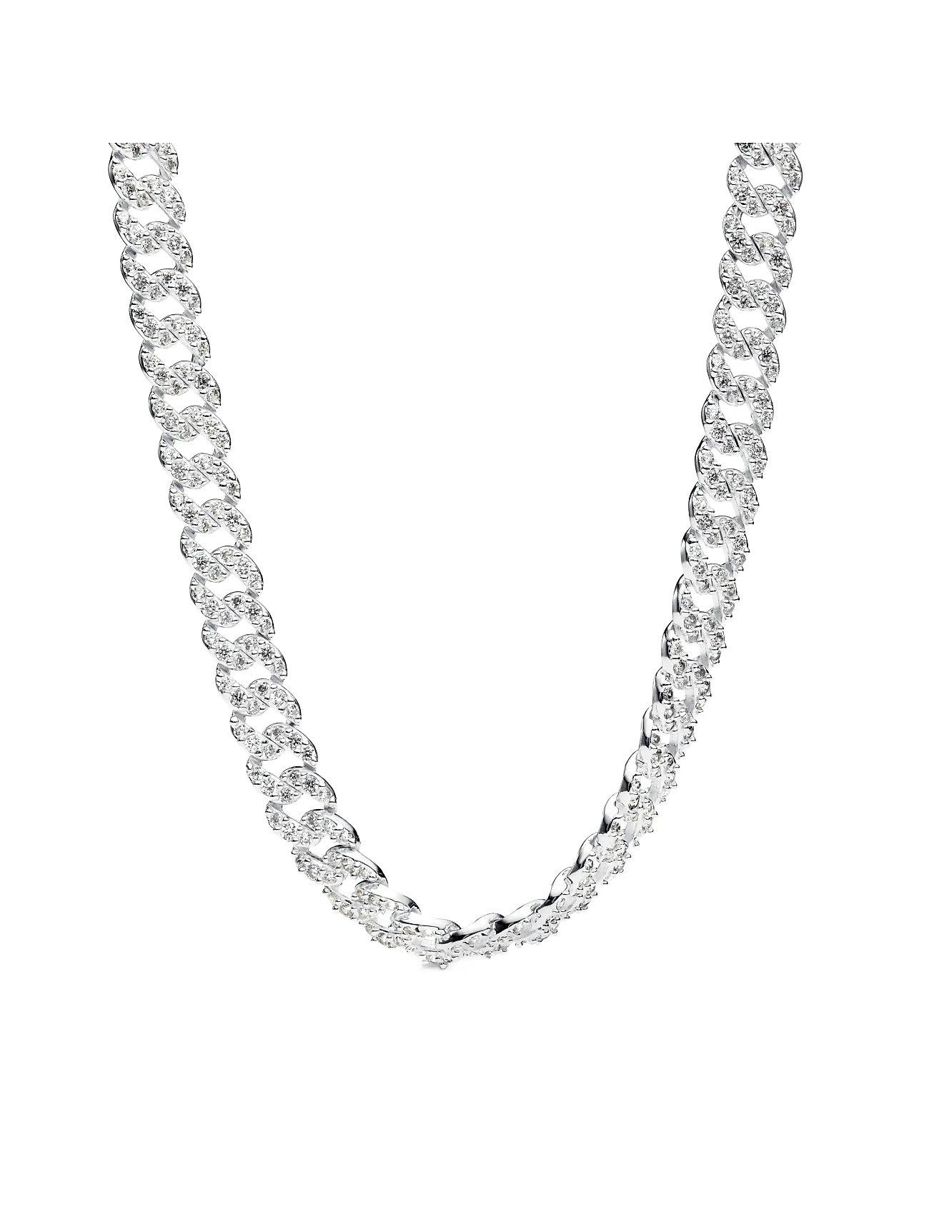 Pandora Cuban Chain Sterling Silver Necklace With Clear Cubic Zirconia Silver