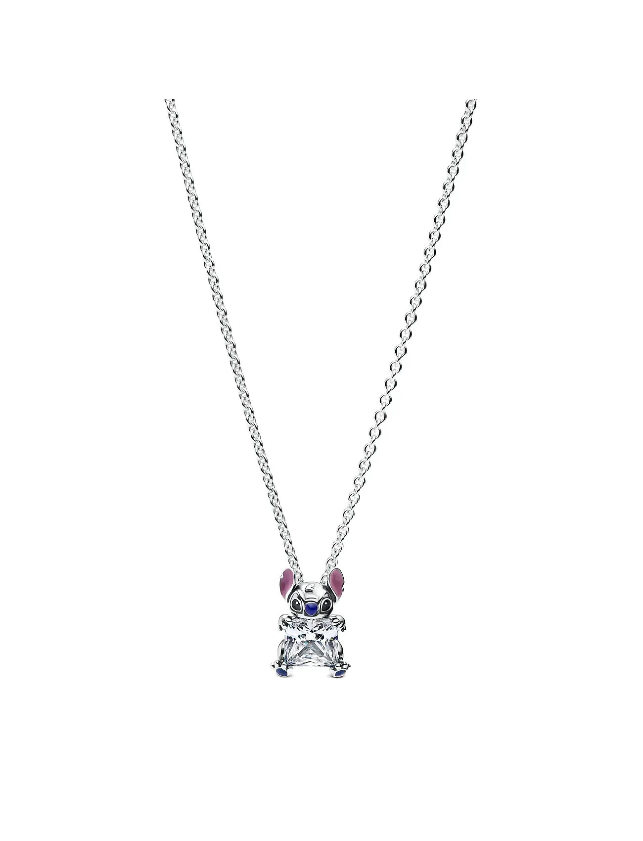 Pandora Disney Stitch Pendant Necklace With Clear Cubic Zirconia, Purple, Blue And Black Enamel Silver