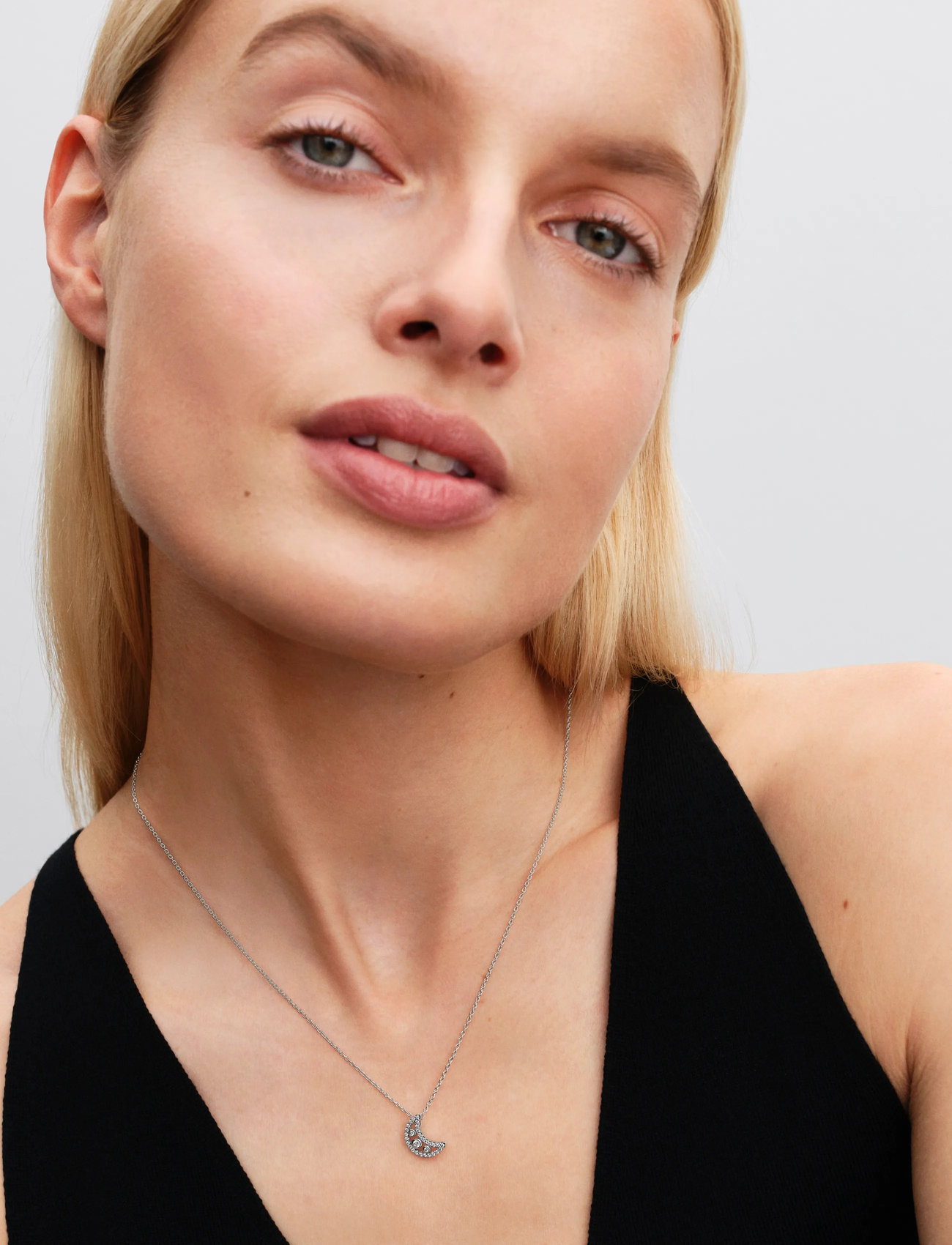 Pandora Moon Sterling Silver Pendant Necklace With Clear Cubic Zirconia - Silver - 50 CM