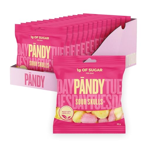 PÄNDY Sour Skulls Sockerfritt Godis med Fruktsmak Gelégodis Utan Socker Storpack Låda Sura Godisar Lågkolhydrat Storpack endast 1 g socker 14 x 50 g