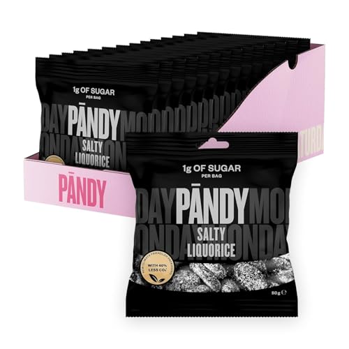 Pändy Salty Liquorice Sockerfritt Godis med Saltlakrits Gelégodis Utan Socker Storpack Låda Sura Godisar Lakrits Lågkolhydrat Storpack endast 1 g socker 14 x 50 g