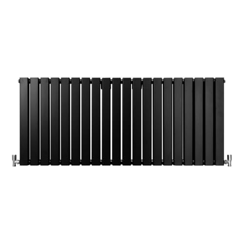 60 x 140cm Svarta Radiatorer med Platta Paneler Stilren Modern Design Element Centralvärme Radiator Horisontal Kolumn Dubbel Panel Väggmonterad Kök Vardagsrum Badrum GRATIS Rengöringsborste
