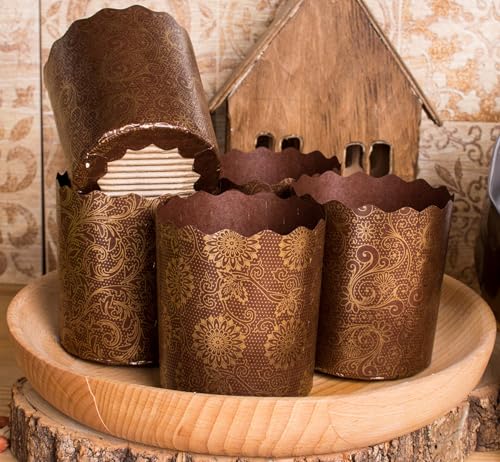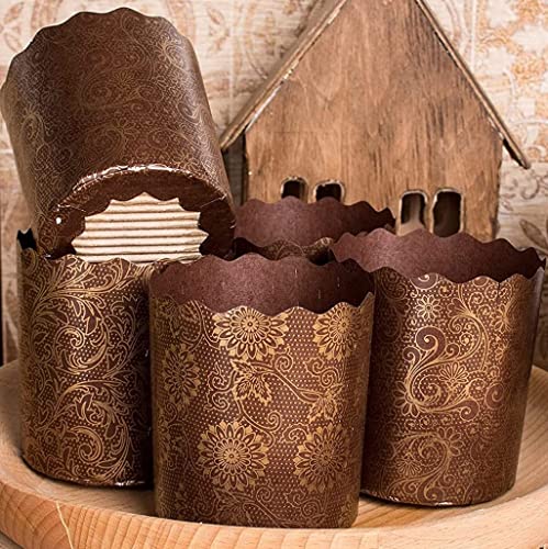 SHSH trade group 12 oz påskbröd pappersform Kulich |12 st| påskbröd former pasha-form - panettone pappersform - italiensk non-stick panettone pappersformar - brun design B 4,33 x H 3,35 tum