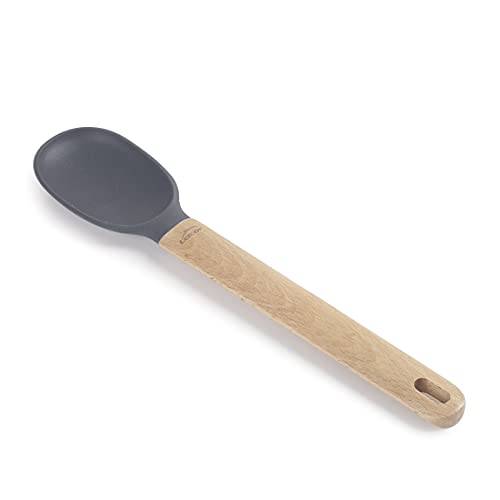 LACOR 68185 slät silikonsked, serveringssked, bokträhandtag, skadar inte pannan, tål höga temperaturer, BPA-fri, 32 x 6,7 x 10 cm, grå