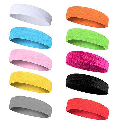 LATRAT 10 st svettband, svettband för pannan, svettband för cykling, sport pannband för män och kvinnor, 18 cm, färgglada