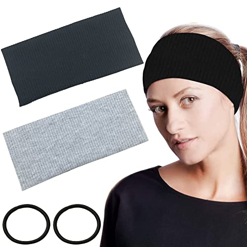 Brett pannband för kvinnor och män, halkfritt elastiskt sportpannband, för sport, yoga, vinter, jul (svart, grå, 2 st)