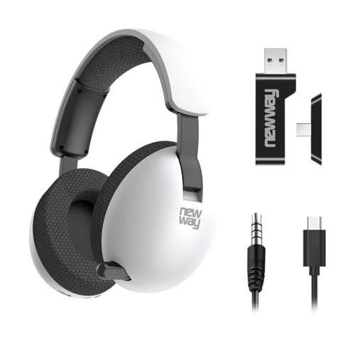 NEWWAY NH251 Trådlösa hörlurar pannband - infällbar mikrofon - trippelläge 2,4 Ghz/BT/3,5 mm uttag - USB/USB-C-mottagare, för PC, bärbar dator, smartphone, konsoler, surfplatta och Mac (vit)