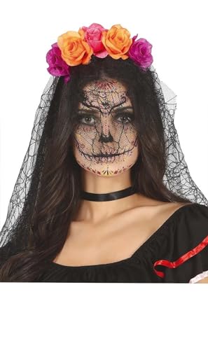 FIESTAS GUIRCA Catrina pannband för kvinnor med svart slöja halloween och pannband blommor lila och orange