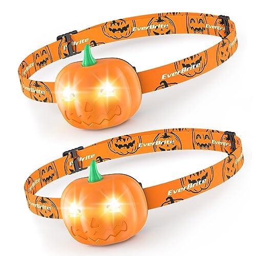 EverBrite 2-pack pumpa-huvudficklampor, halloween huvudlampa för barn, 2 belysningslägen pannlampa, lätta pannlampor för fest