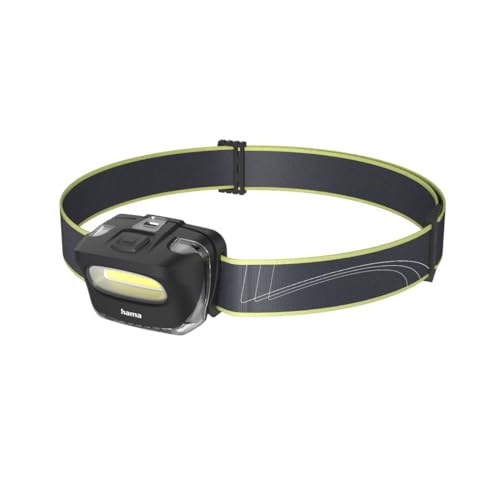 Hama COB HL110 LED-pannlampa med AA-batterier, lätt, vattentät, för löpning, camping och gör-det-själv