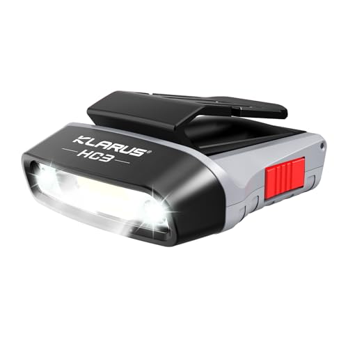 KLARUS HC3 LED Clip On Cap Light Cap Light pannlampa pannlampa, USB C,vitt och rött ljus med sensorkontroll, 5 lägen dimbar, för jakt, camping, fiske