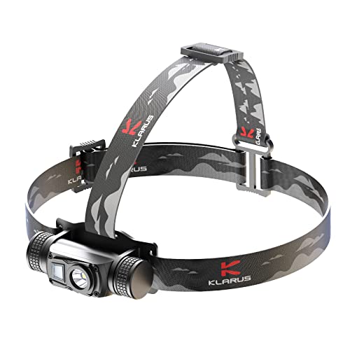 KLARUS HL1 1200 Lumens LED uppladdningsbar pannlampa, 7 lägen 100 timmars drifttid, IPX6 vattentät LED-huvudlampa för löpning, camping, vandring, jakt