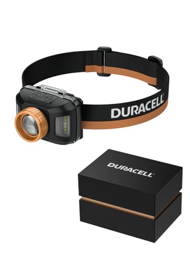 Duracell LED-pannlampa DH400 Pro – 400 lumen, fokuserbar, 50 m ljusvidd, rött ljusfunktion, olika Ljuslägen, 3 x AAA-batterier inklusive lätta och stänksäkra, inklusive presentförpackning
