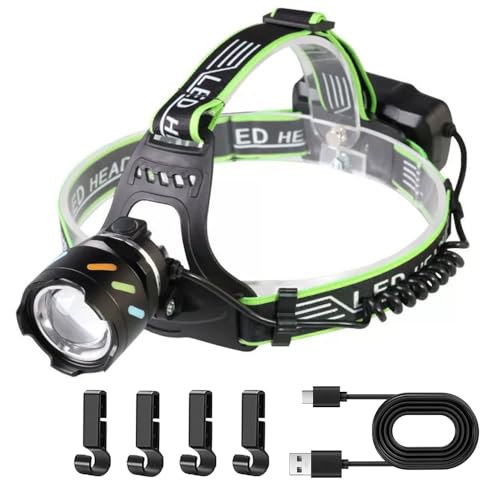 WholeFire 13 000 Lumen LED-pannlampa, superljus USB-uppladdningsbar, XHP90 zoombar pannlampa med 4 lägen, COB-ljus, strömindikator och powerbank för nödsituationer vid camping