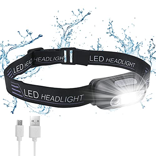 DEALEEZ USB, Pannlampa, uppladdningsbar LED-lampa, vitt och rött ljus med fem lägen, högeffektiv pannlampa, stänkskyddad