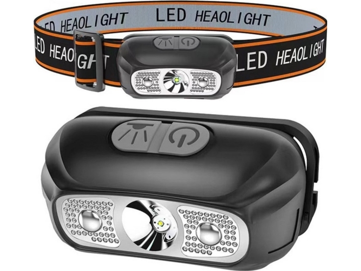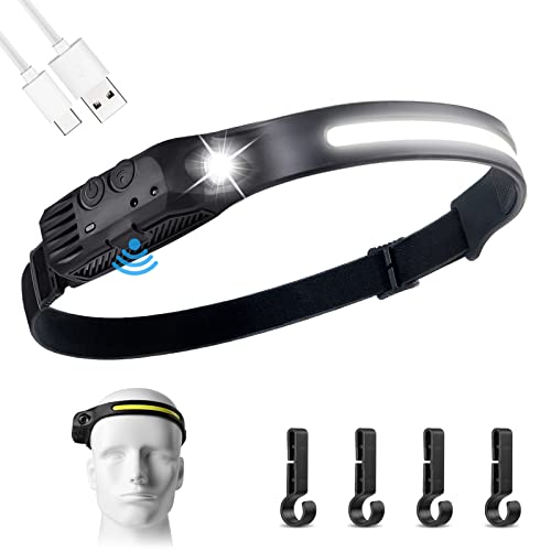 Pannlampa, USB 1200mAh Induktionsstrålkastare med Bred Stråle 5 Ljuslägen för Camping