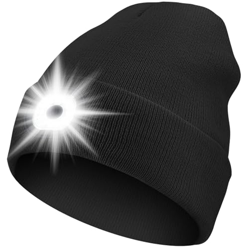ZONSUSE Mössa med 6 LED-lampor, LED-vintermössa, upplyst löparmössa, stickad mössa med pannlampa, avtagbar, USB-laddning, 3 ljusstyrkor, för män och kvinnor, nattlöpning camping ridning fiske, svart,