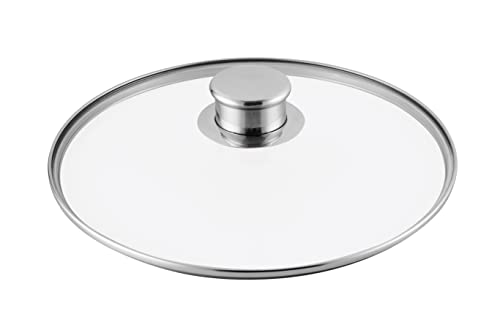 DIIG Pannlock 28 cm, glaslock med rostfri kant, grytlock med metallknopp, universellt lock för kastrull och panna, värmebeständigt