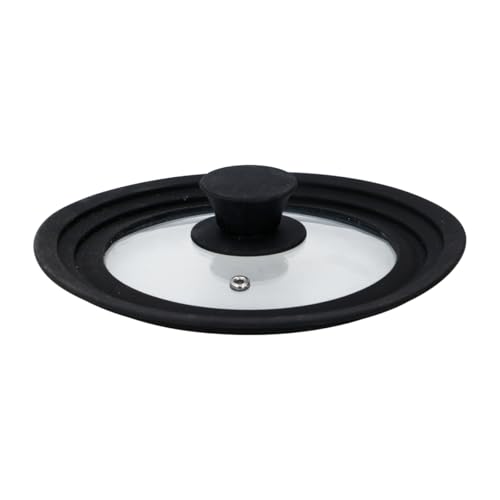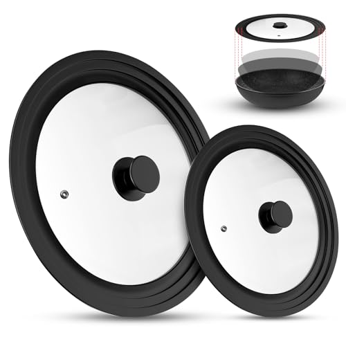 Sunoya Universellt lock, glaslock för krukor, grytlock värmebeständigt pannlock med graderad silikonkant för kastruller och stekpannor, för Ø 16/18/20 cm och Ø 24/26/28 cm (set med 2, svart)
