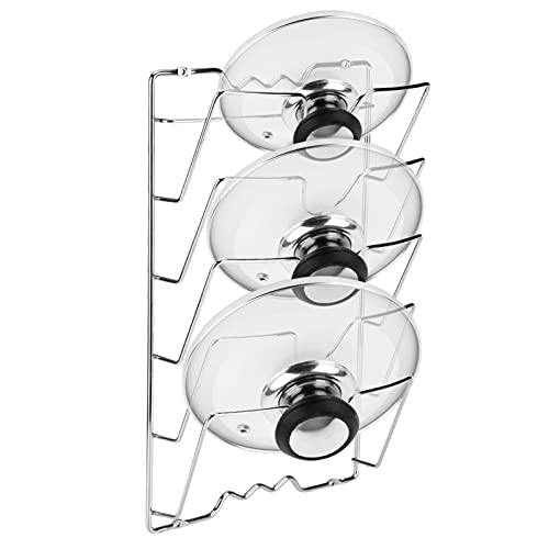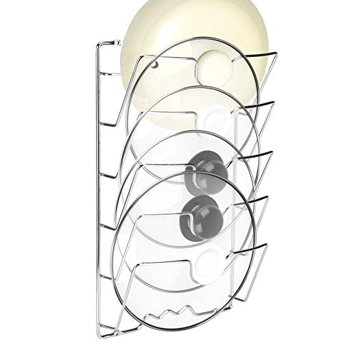 Ejoyous Grytlockhållare, fem grytor/pannlock vägg-/dörrmontering gryta och lockhållare köksskåp förvaringshylla för hem kök restaurang för 5 lock