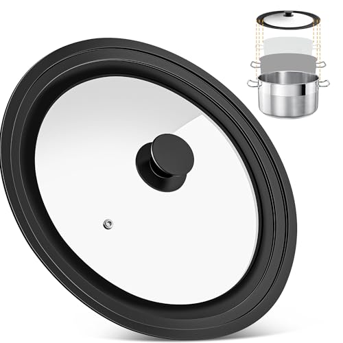 VIOKS glaslock 30 cm grytlock och pannlock universellt med knapphandtag och rostfri skyddskant – universallock för kastruller med ventilationshål