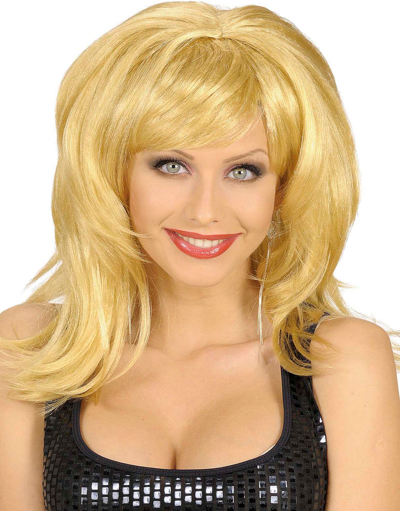 Blond Peruk med Vågigt Hår och Pannlugg