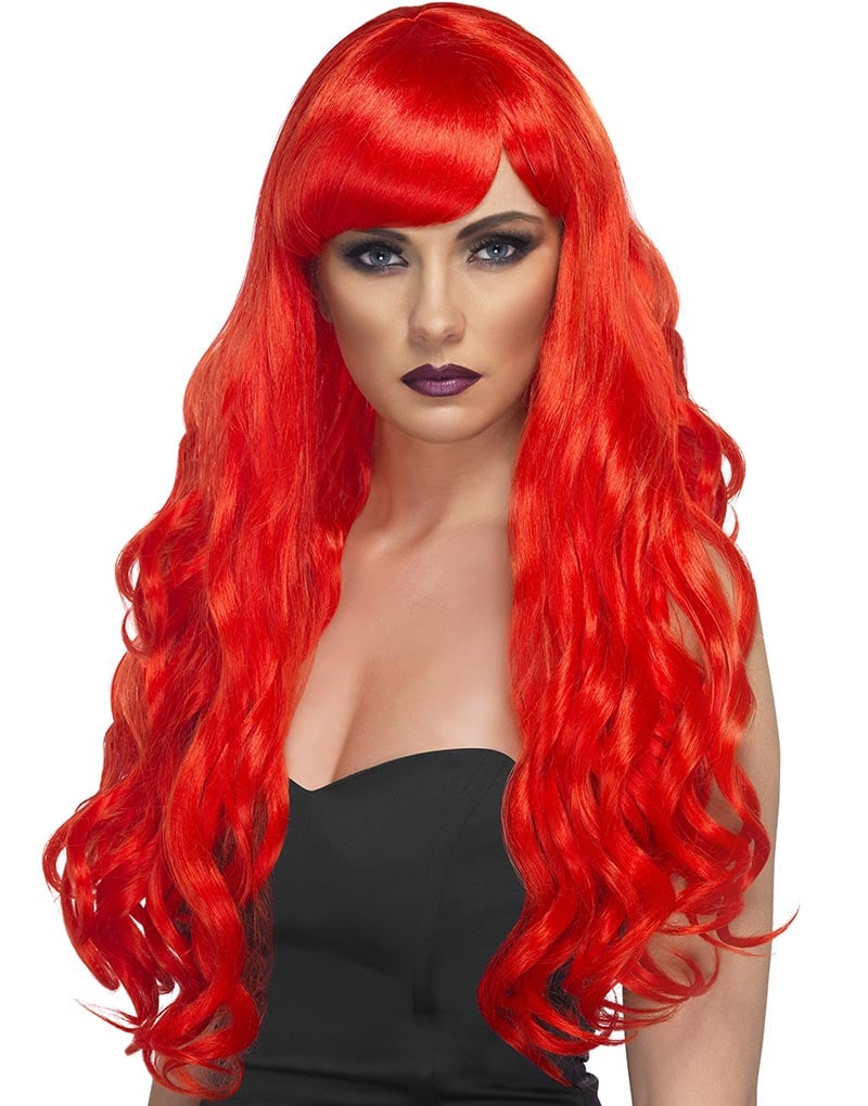 Desire - Röd Lockig Peruk med Pannlugg
