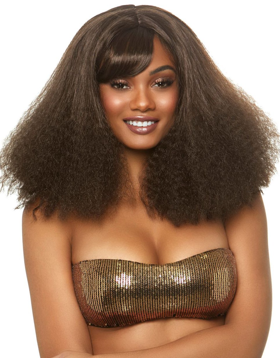 Brun Fyllig 80-tals Peruk med Skrå Pannlugg