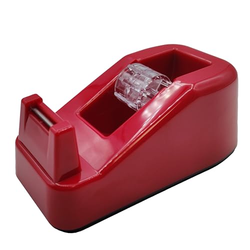 Raylu Paper® - Självhäftande tejp dispenser för skrivbord och kontor, Celo Dispenser med vikt och halkfri bas, 33 m rullhållare (Röd)