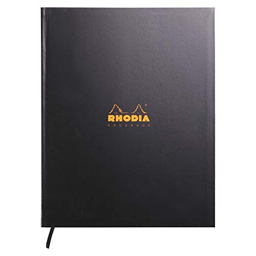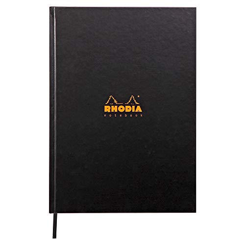 RHODIA 19056C - Cahier Rigide Noir A4 | Ligné | 192 pages - Papier Clairefontaine Blanc 90g - Ruban Marque-Page - Rhodiactive
