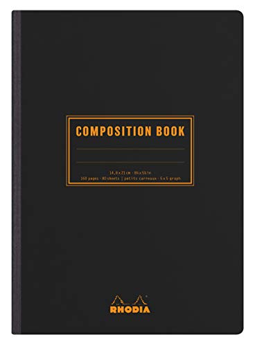 RHODIA 119209C - Carnet Souple Dos Toilé Composition Book Noir - A5 - Petits Carreaux - 160 pages - Papier Clairefontaine Blanc 80 g/m - Classic
