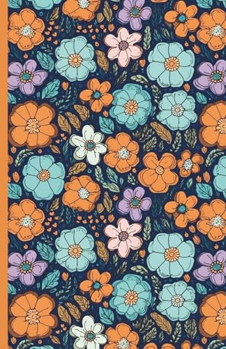 Carnet de notes FLORAL : illustrations fleurs colorées sur fond noir I Idée cadeau I Journal au format 14x22cm - 80 pages à points recto-verso - Papier blanc matte
