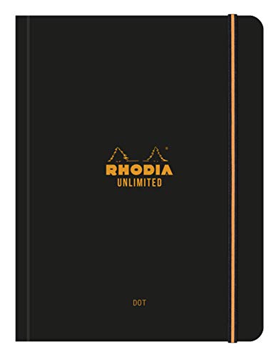 RHODIA 118969C - Carnet à Élastique Unlimited Noir - A5+ - Pointillés Dot - 120 pages Détachables - Papier Clairefontaine Blanc 80 g/m - Couverture Toucher Velouté