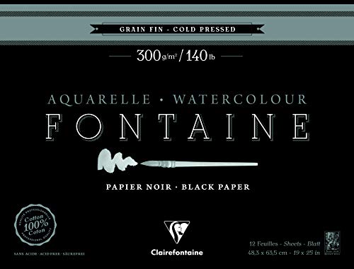 Clairefontaine 975309C - Un bloc encollé 1 côté de papier dessin Fontaine 12 feuilles grain fin 48,3x63,5 cm 300g, Noir