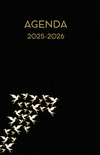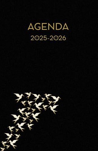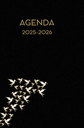 Agenda scolaire journalier 2025-2026-Origami - Oiseau - Pliage papier- Fond noir (13.34x20.32 cm) 1 page par jour