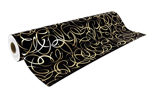 Clairefontaine 211954C - Une Bobine De Papier Cadeau - Papier Premium 80g - Format : 50x0,70m - Motif : Arabesques Or/Noir, Géométrique - Emballage Cadeau, Idéal Pour Les Emballages Professionnels