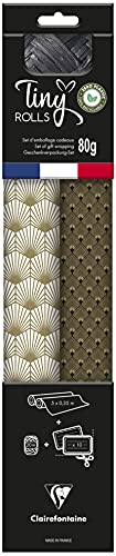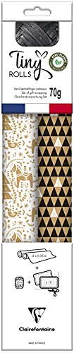 Clairefontaine 212857AMZC - Un Carton De 10 Rouleaux De Papier Cadeau - Papier Premium 80g - Dimensions : 2x0,70m - Motif : Géométrique, Noir Et Or - Emballage Cadeau
