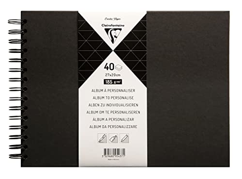 Clairefontaine 95437C - Album Spiralé à Personnaliser - 40 Feuilles de Papier Noir Épais 185g/m² - Format 27x20cm - Couverture Rigide Noire - Loisirs Créatifs, DIY, Scrapbooking