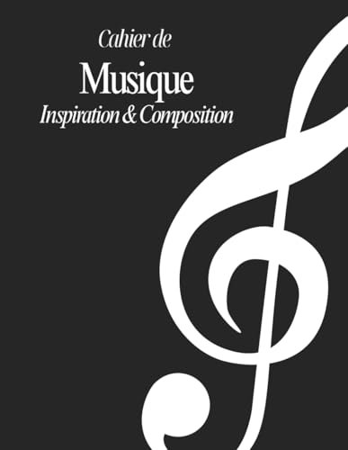 Cahier de Musique Inspiration & Composition: Grand Format | 100 Pages | Papier Blanc – 13 Portées par Page | Couverture Sobre Noir & Blanc.