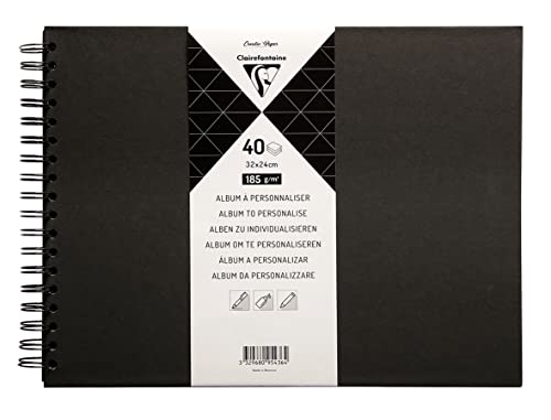 Clairefontaine 95436C - Album Spiralé à Personnaliser - 40 Feuilles de Papier Noir Épais 185g/m² - Format 32x24cm - Couverture Rigide Noire - Loisirs Créatifs, DIY, Scrapbooking