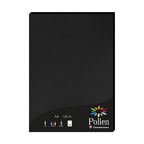 Clairefontaine 4298C - Étui de 50 Feuilles - Format A4 (21x29,7cm) - 120g/m² - Coloris Noir - Papier d'Invitation Evènements et Correspondance - Gamme Pollen - Papier Premium Lisse