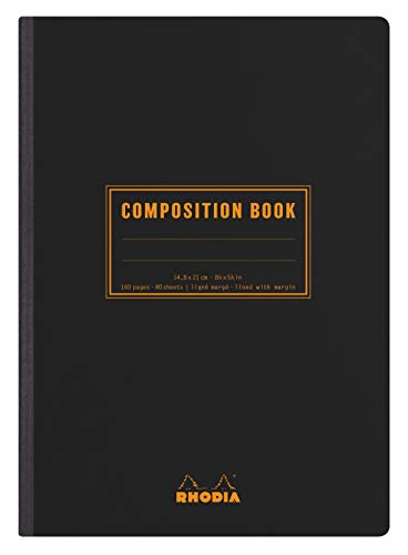 RHODIA 119219C - Carnet Souple Dos Toilé Composition Book Noir - A5 - Ligné - 160 pages - Papier Clairefontaine Blanc 80 g/m - Classic