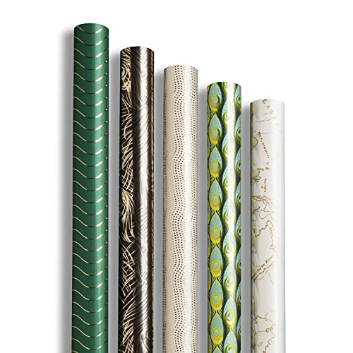 Clairefontaine 212871AMZC - Un Carton De 10 Rouleaux De Papier Cadeau - Papier Premium 80g - Dimensions : 2x0,70m - Motif : Brillant, Noir, Blanc, Vert, Plume, Voyage, Planisphère - Emballage Cadeau