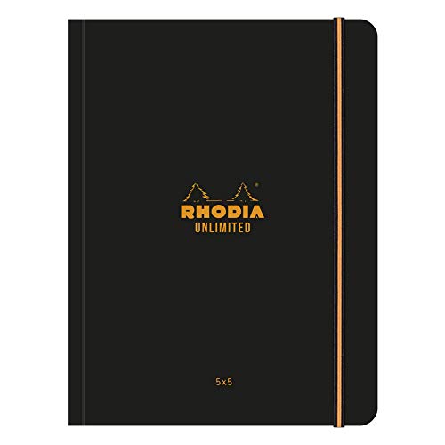 RHODIA 118759C - Carnet à Élastique Unlimited Noir - A5+ - Petits Carreaux - 120 pages Détachables - Papier Clairefontaine Blanc 80 g/m - Couverture Toucher Velouté